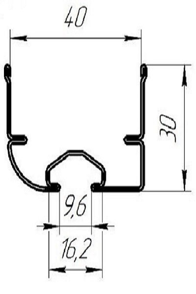 Устанавливается на верхнюю или нижнюю панель ворот. Служит для усиления в полотне и как элемент крепления уплотнителя (арт. UP19 или UP40).